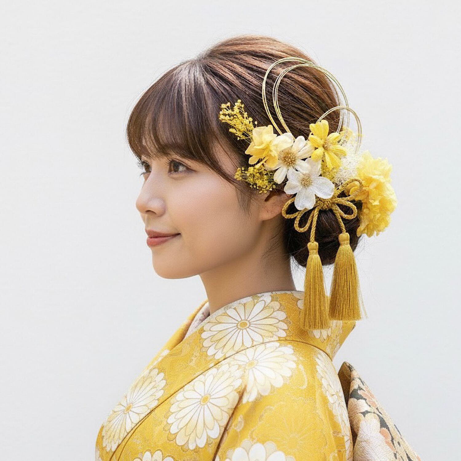 成人式 卒業式 結婚式 フラワーミックス髪飾り ホワイトイエロー 黄色 水引き髪飾り 二十歳の集い ヘッドパーツ 和装 卒業式髪飾り 七五三 ヘッドドレス