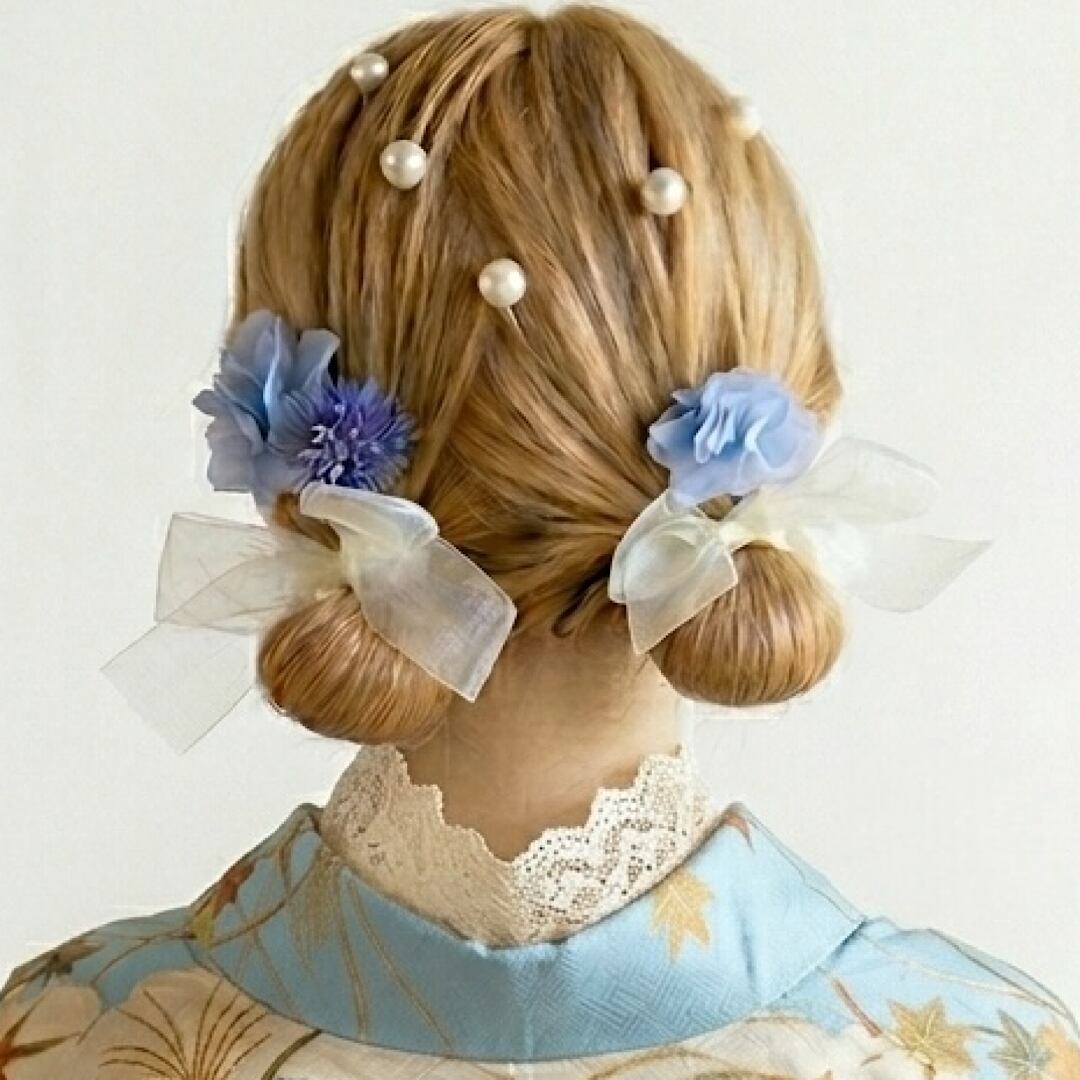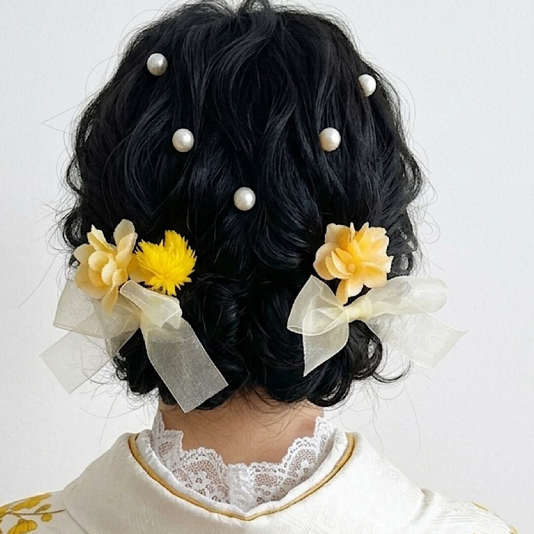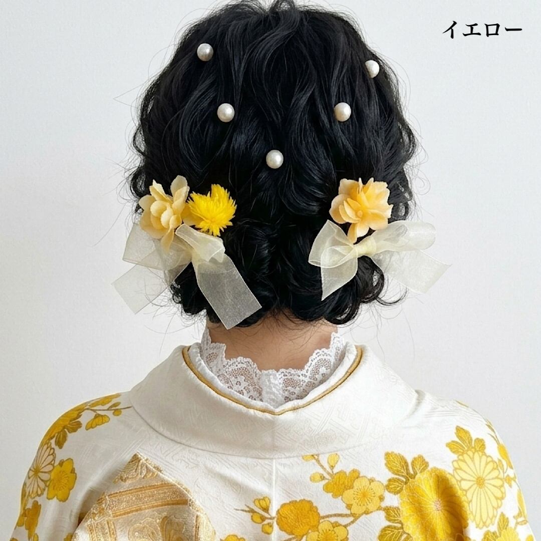 お花とリボンのパール髪飾り 成人式 卒業式 結婚式 七五三 和装 ツインテール 成人式髪飾り 卒業式髪飾り 結婚式髪飾り 七五三髪飾り