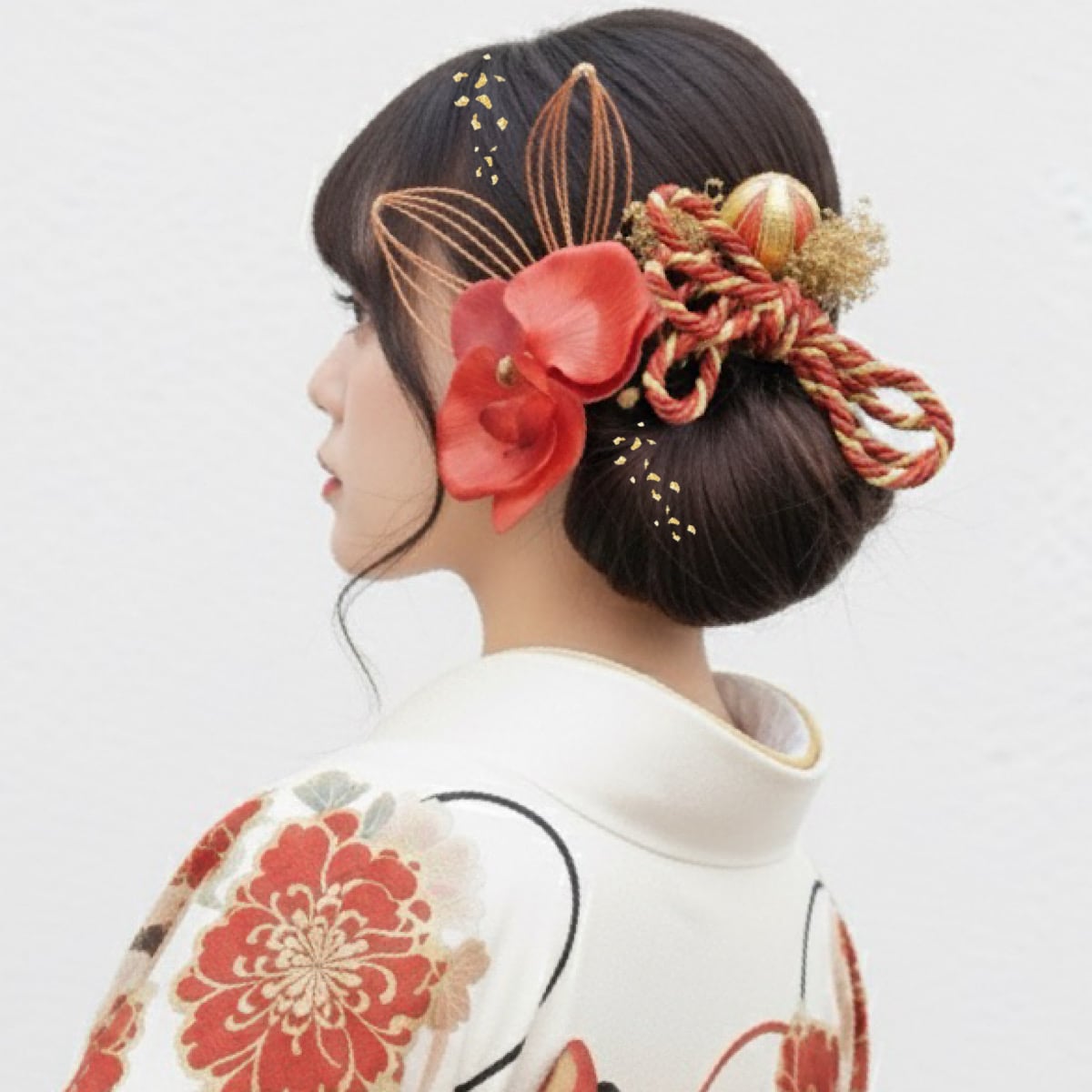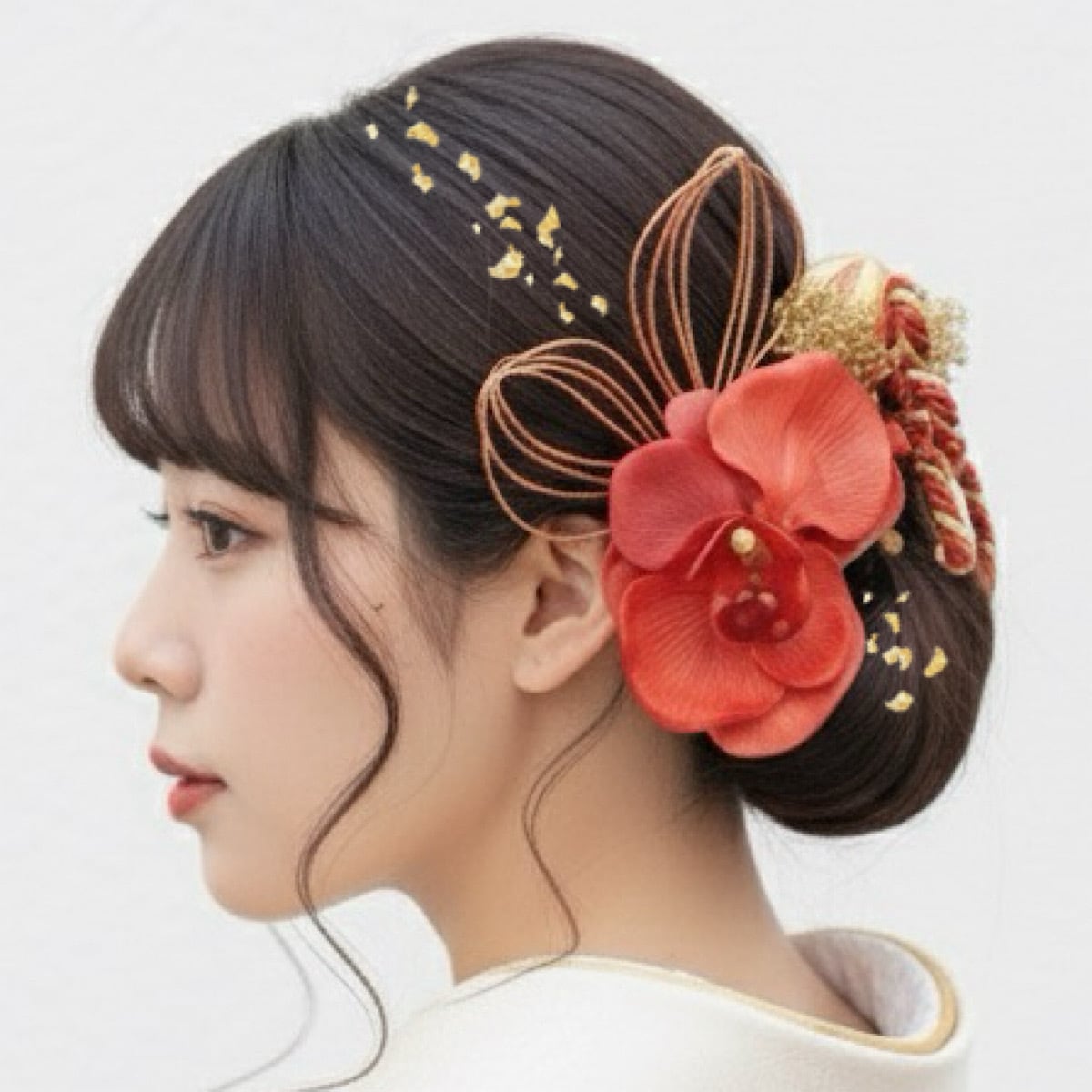 成人式髪飾り 胡蝶蘭 水引きレッドゴールド髪飾り 成人式 卒業式 卒業式髪飾り 七五三 七五三髪飾り 結婚式 結婚式髪飾り 和装 和装髪飾り