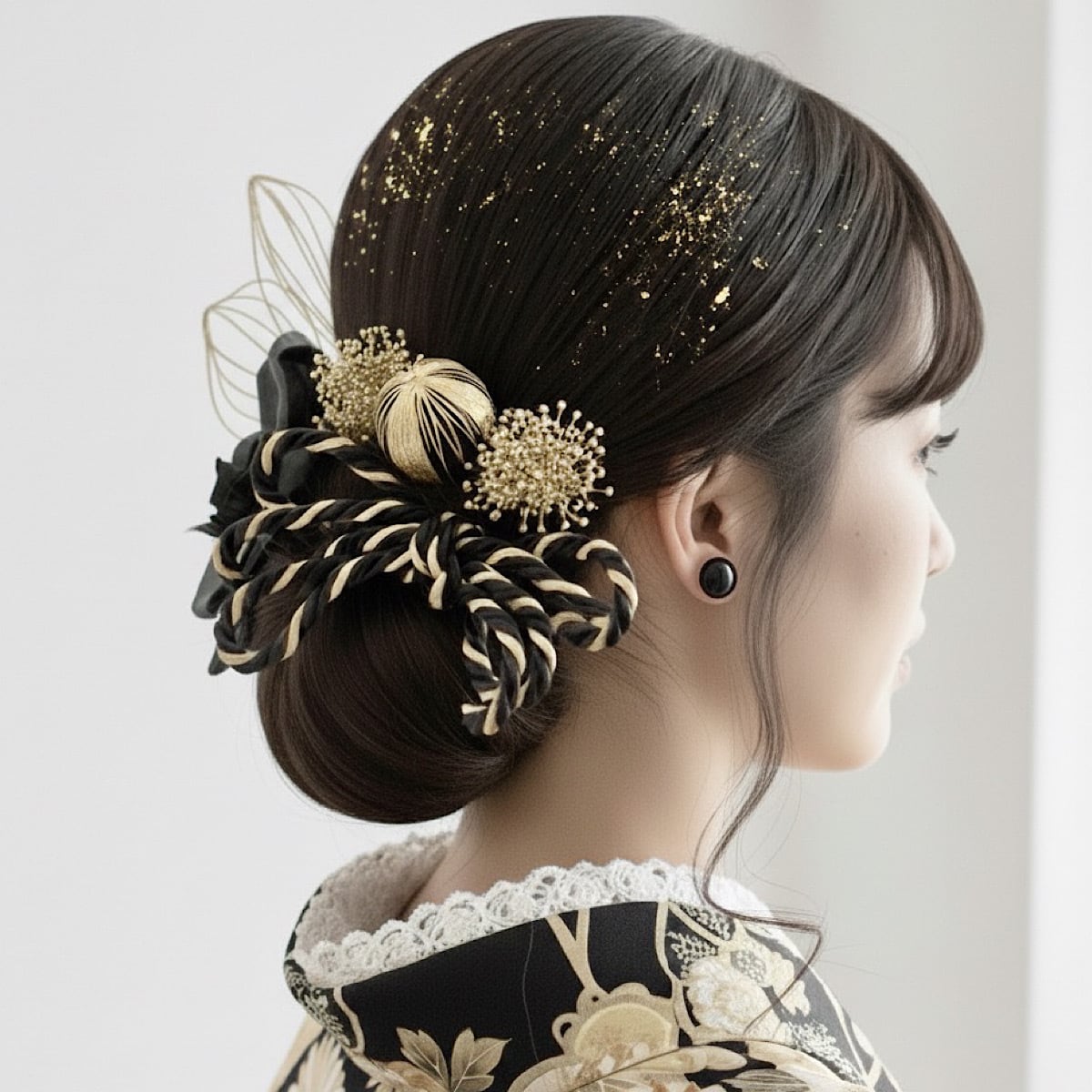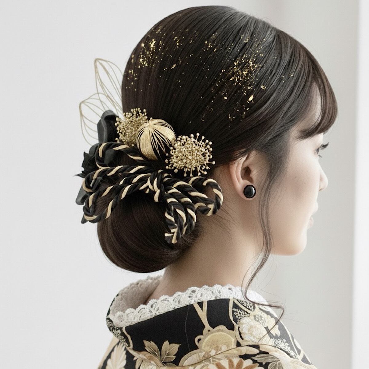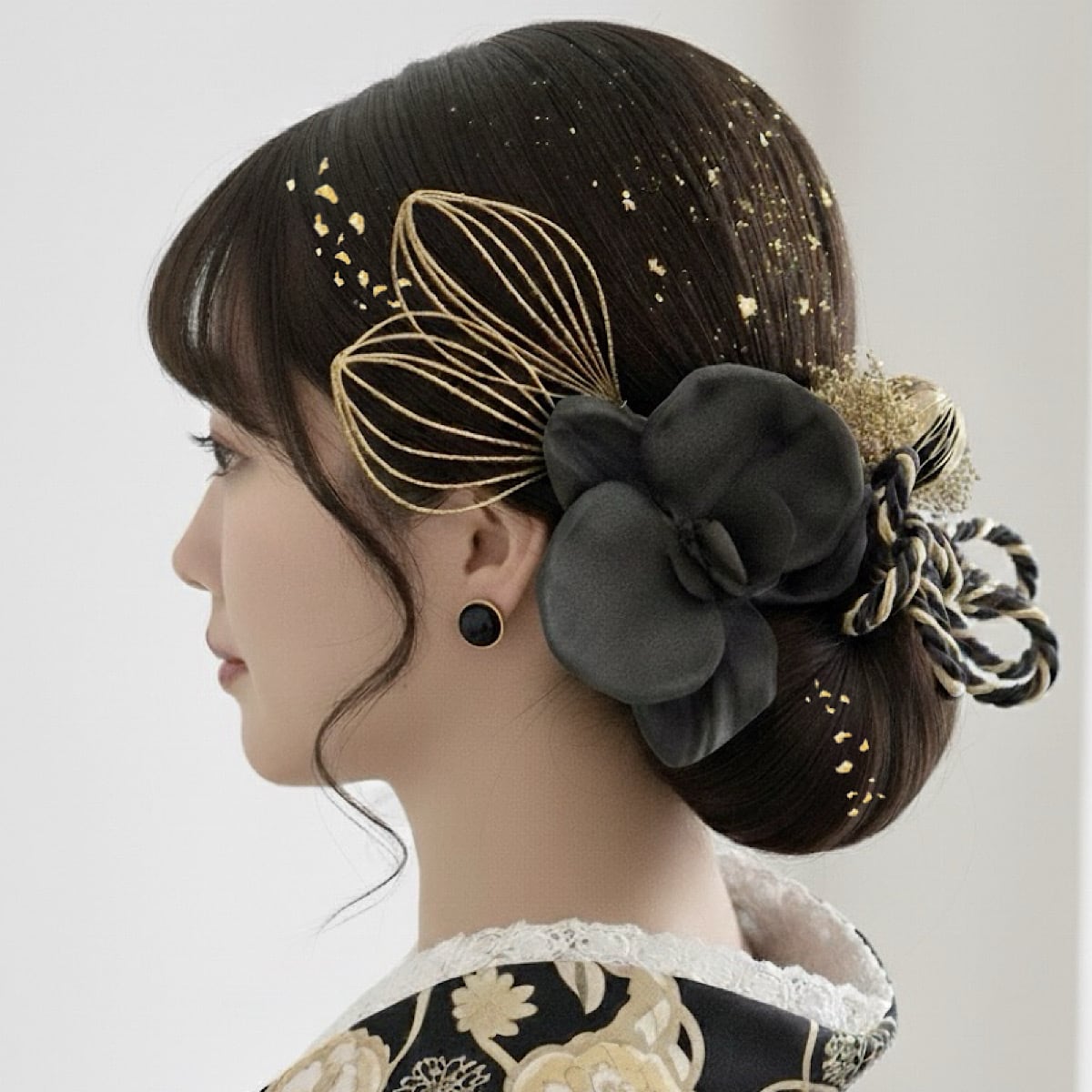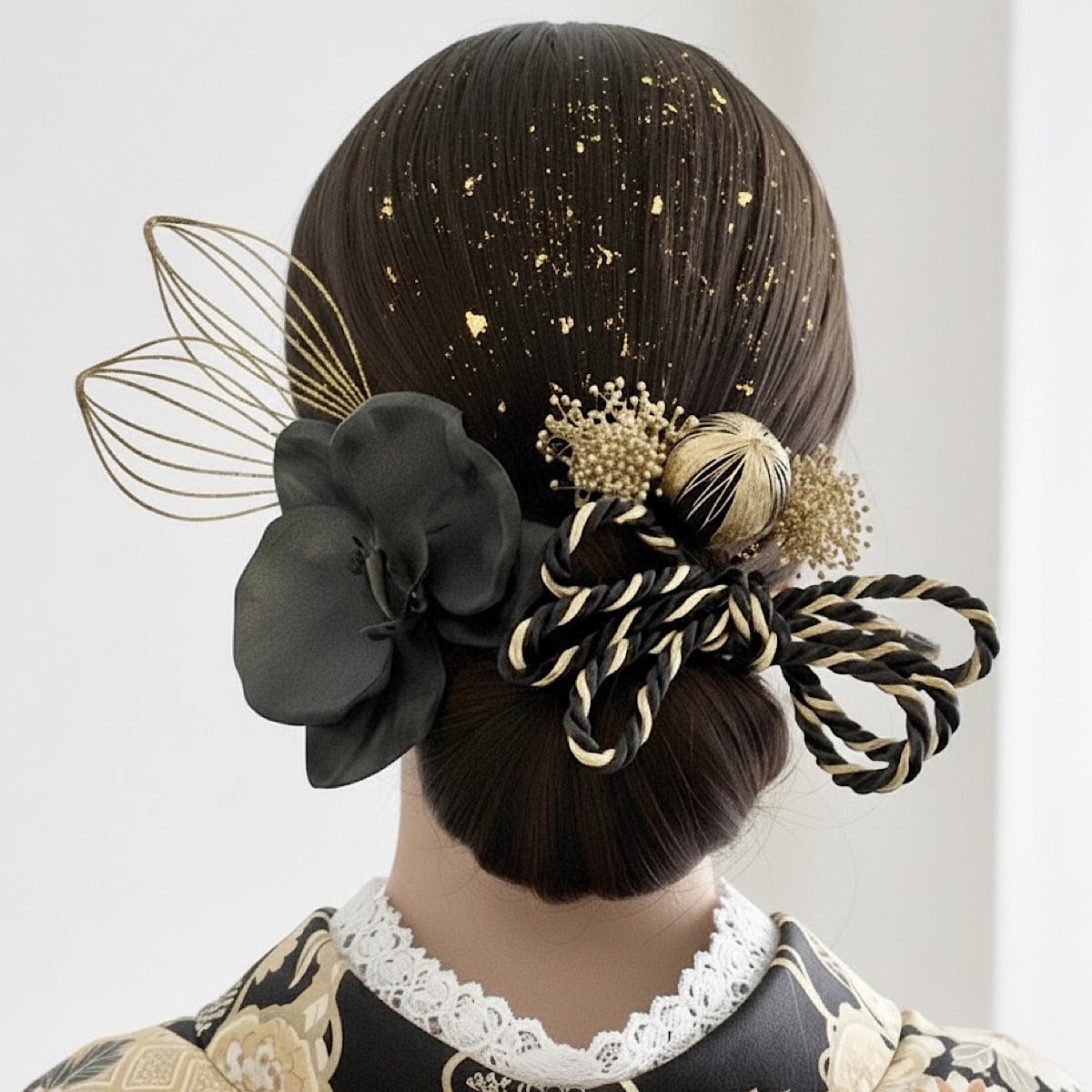 成人式髪飾り 胡蝶蘭 水引きブラックゴールド髪飾り 成人式 卒業式 卒業式髪飾り 七五三 七五三髪飾り 結婚式 結婚式髪飾り 和装 和装髪飾り