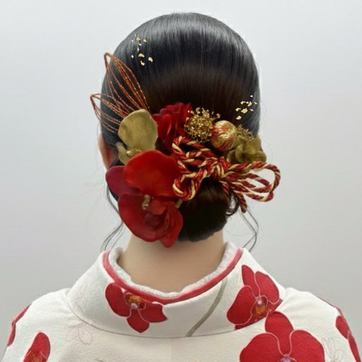 胡蝶蘭髪飾り レッドゴールド 成人式髪飾り 卒業式髪飾り 結婚式髪飾り 七五三髪飾り 和装