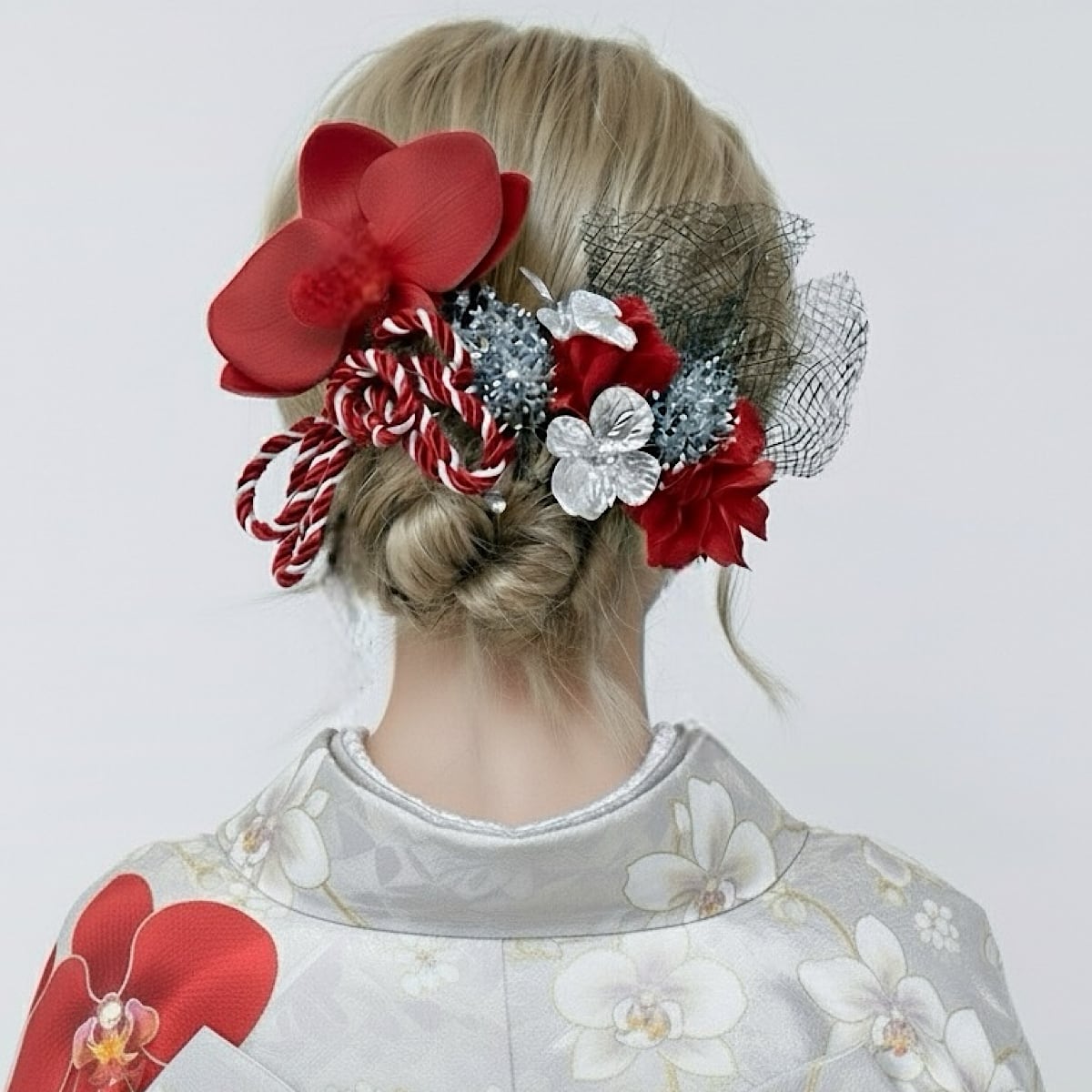 成人式 髪飾り 胡蝶蘭髪飾り レッドシルバー 成人式髪飾り 卒業式髪飾り 結婚式 袴 和装 振り袖 胡蝶蘭 胡蝶蘭黒