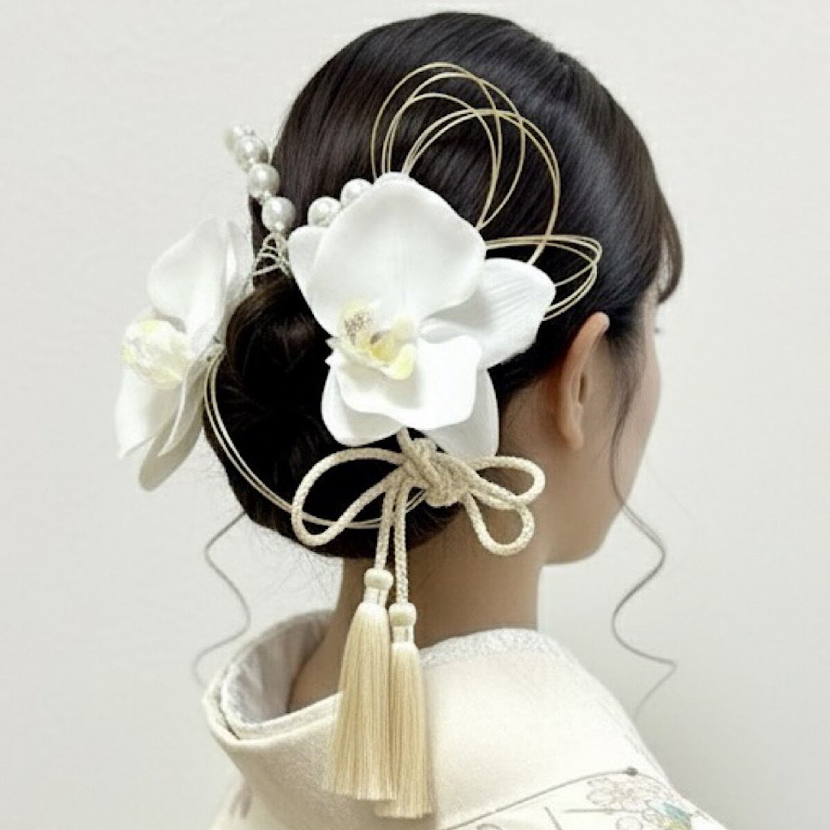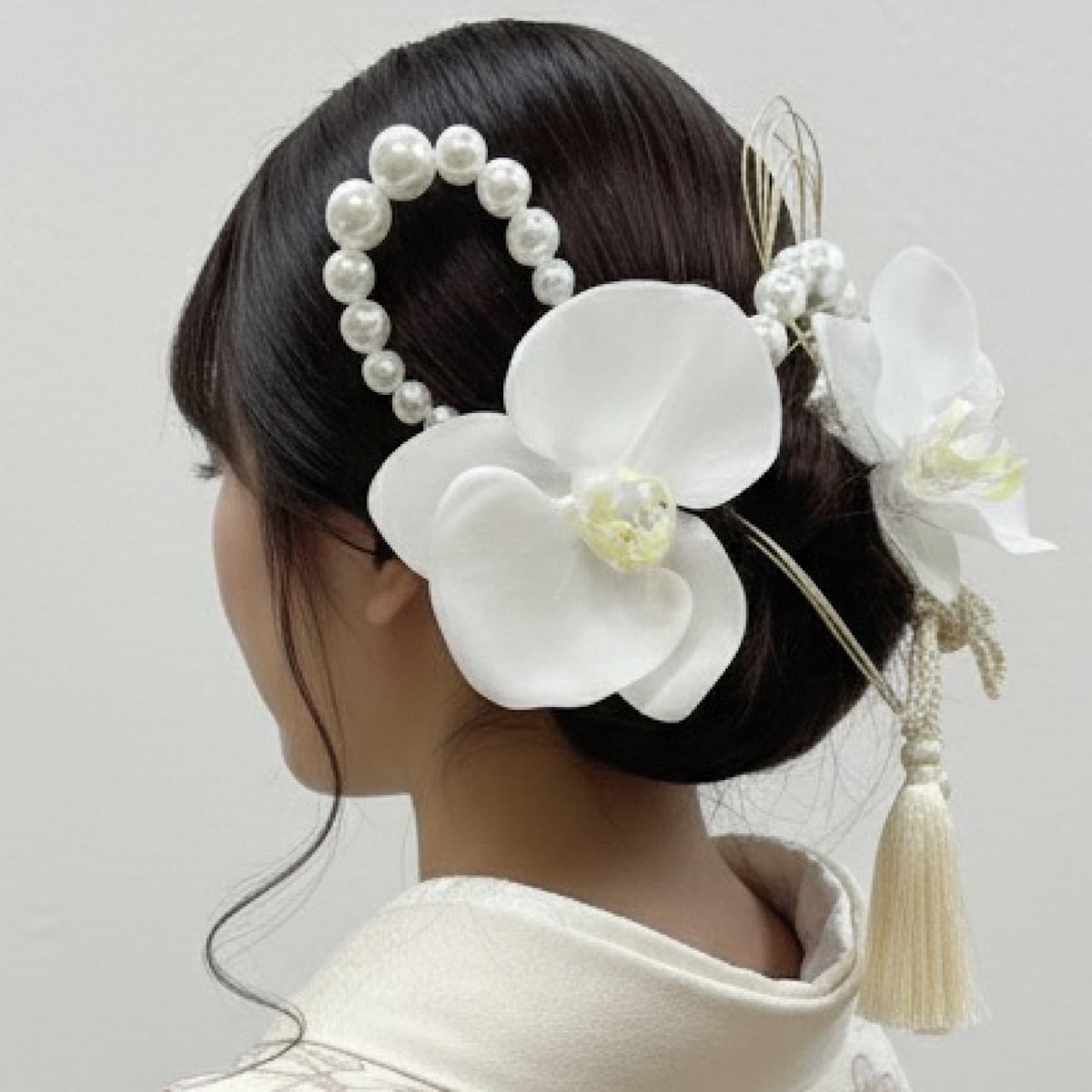 成人式髪飾り 、七五三髪飾り 、卒業式髪飾り 、 結婚式髪飾り 、 成人式 、結婚式 、七五三 、卒業式 、ヘッドドレス 、ヘッドパーツ 、ランダムボールチェーン 、 ボールチェーン 、 ランダムパールチェーン 、 パールチェーン 、胡蝶蘭 、胡蝶蘭髪飾り