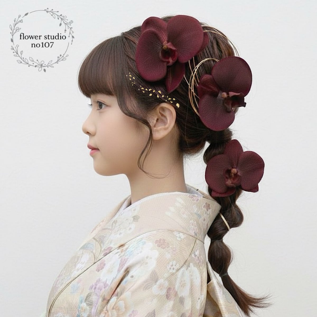 ベロア胡蝶蘭髪飾り 成人式 卒業式 結婚式 七五三 髪飾り バーガンディ 赤