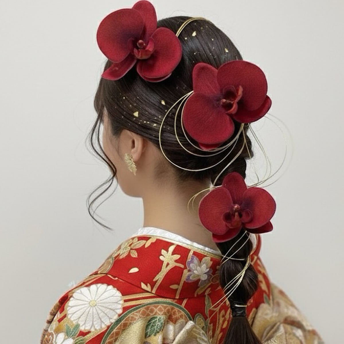 胡蝶蘭髪飾り ベロアレッド胡蝶蘭 成人式 結婚式 卒業式 成人式髪飾り 和装