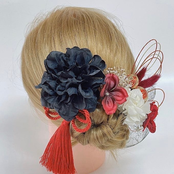 成人式 & 結婚式 ブラックダリアの髪飾り 成人式髪飾り 結婚式髪飾り ウエディング 卒業式髪飾り 卒業式