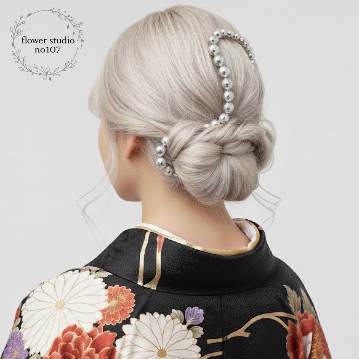 ランダムボールチェーン シルバー 成人式 結婚式 卒業式 髪飾り