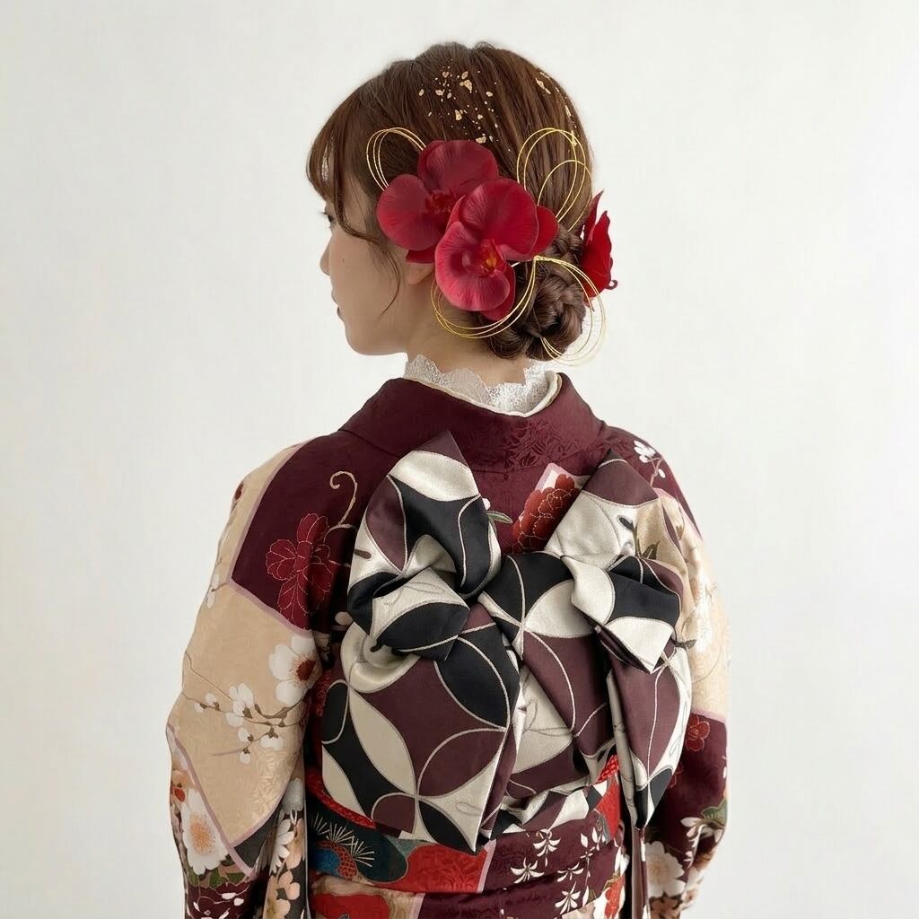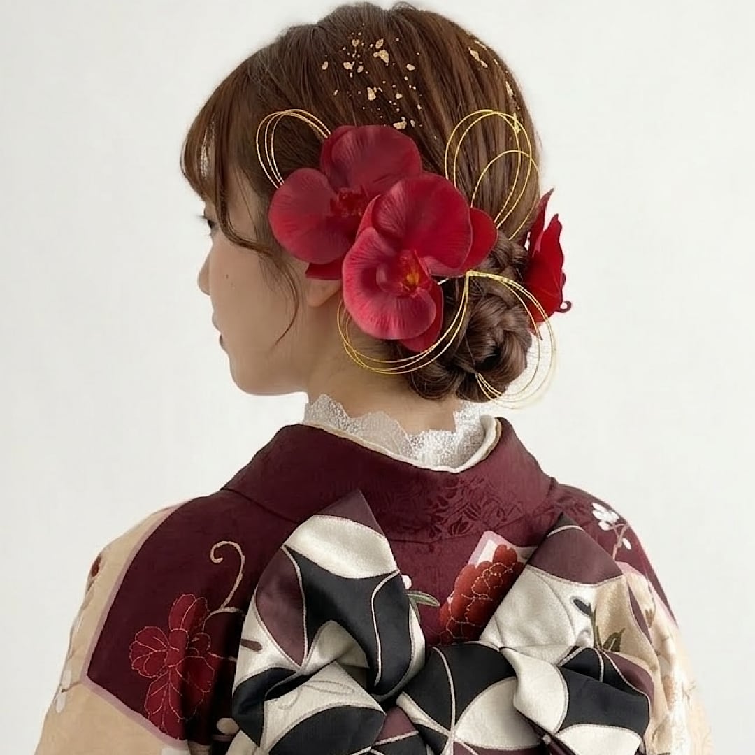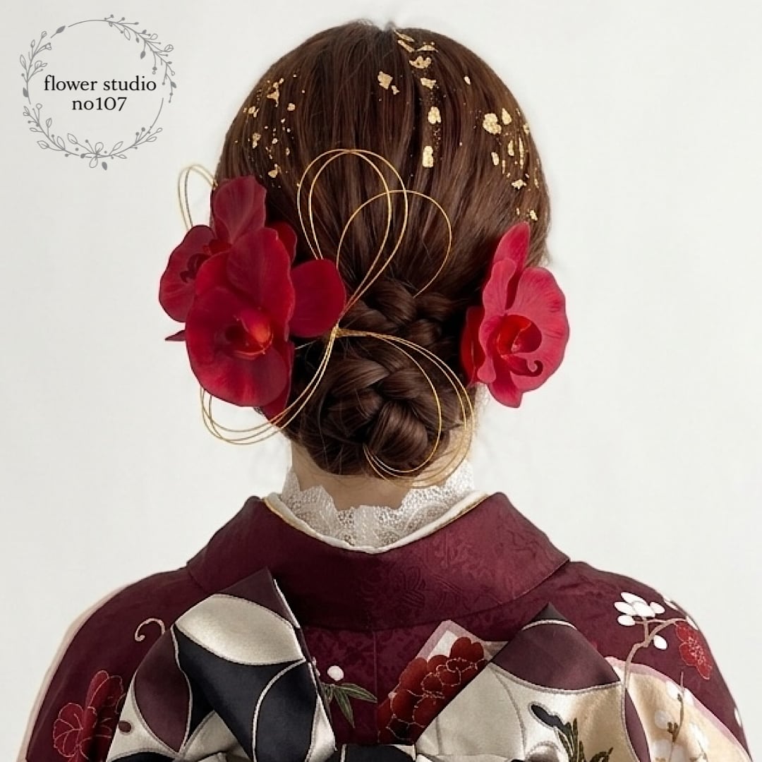 胡蝶蘭レッド髪飾り 成人式 卒業式 結婚式 前撮り 成人式ヘア
