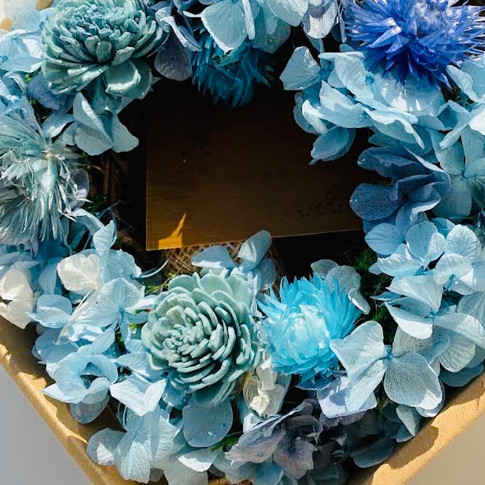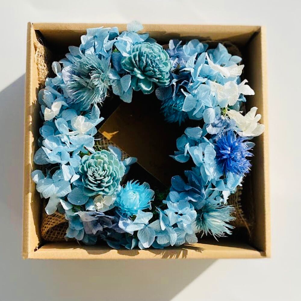 送料無料ドライフラワー&プリザーブドフラワーリース ブルーベースカラー
