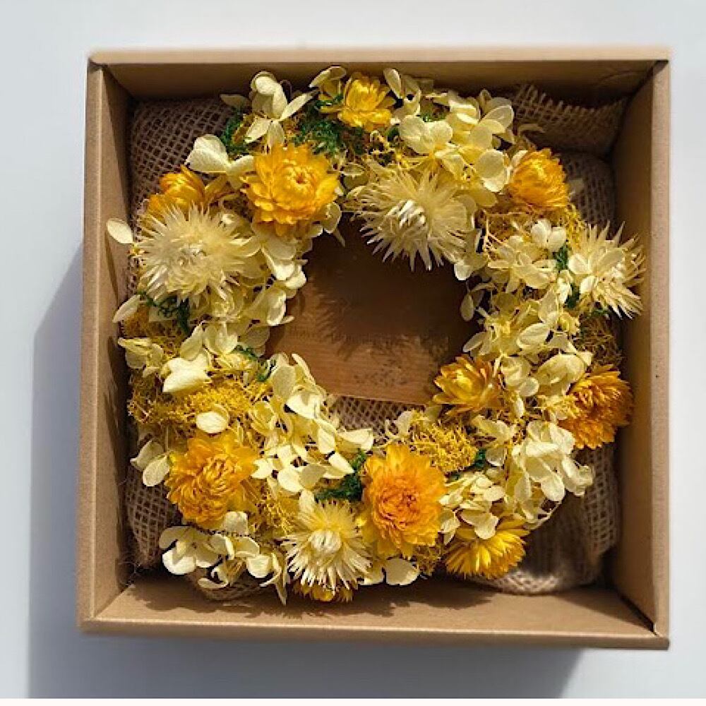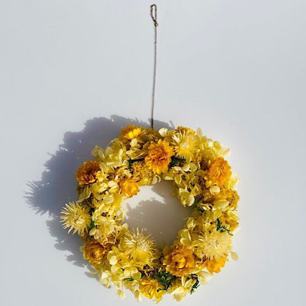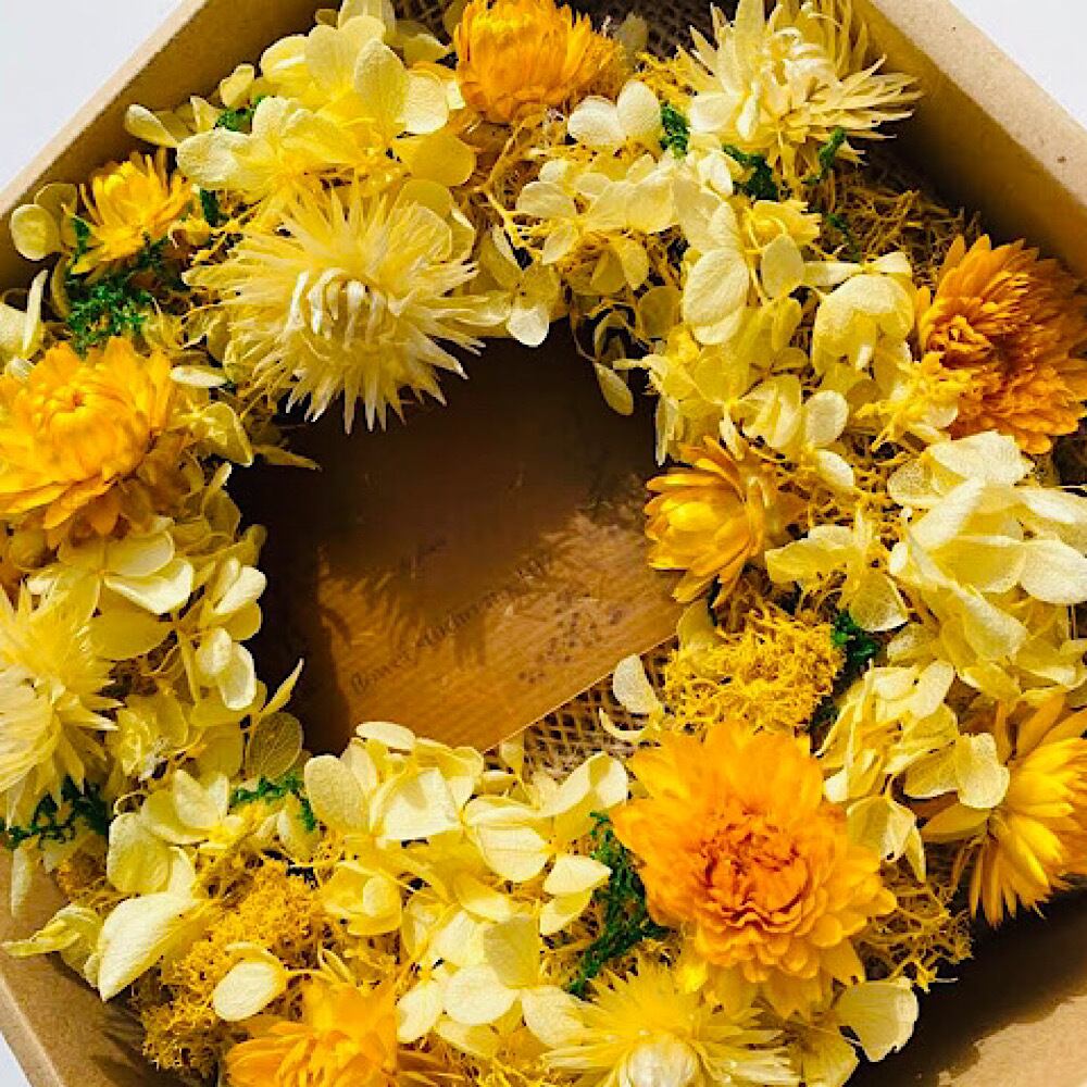 送料無料ドライフラワー&プリザーブドフラワーリース イエローベースカラー