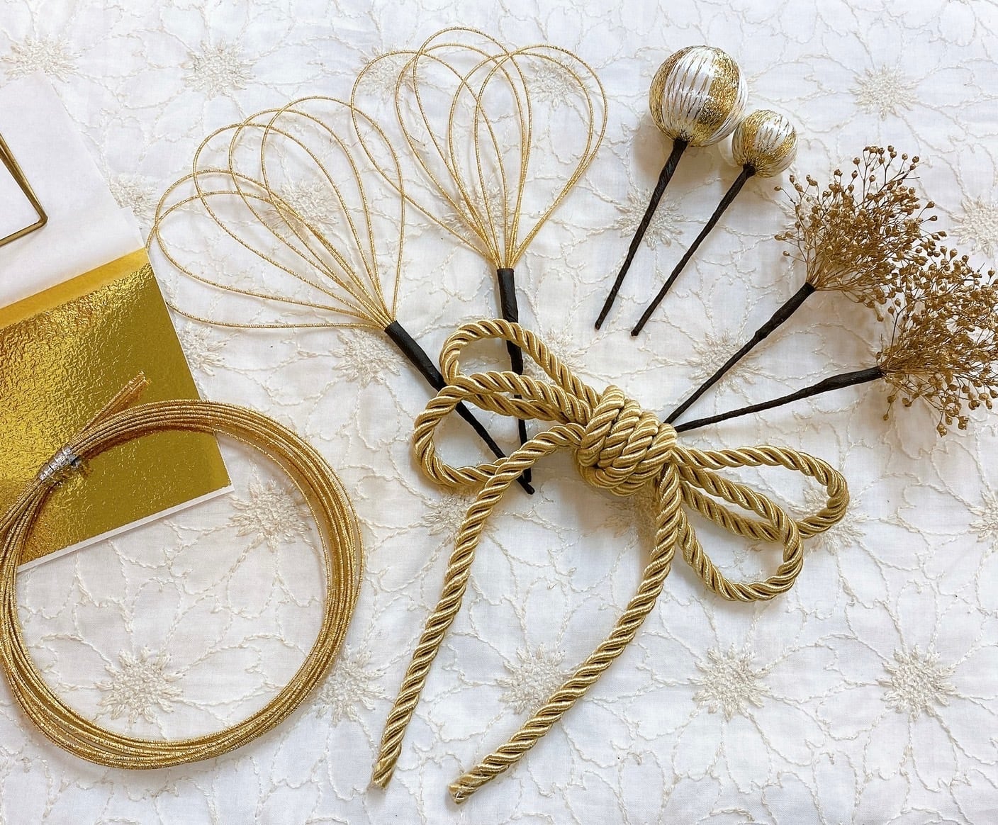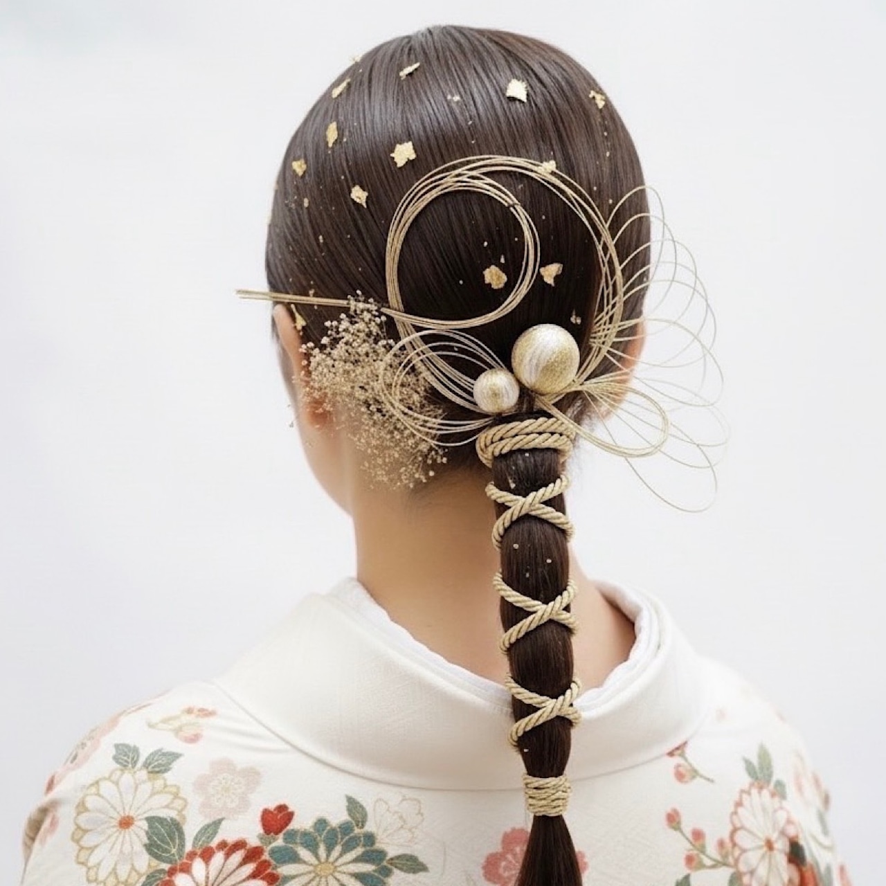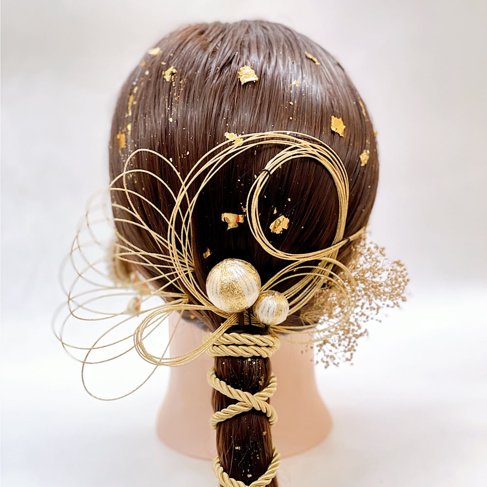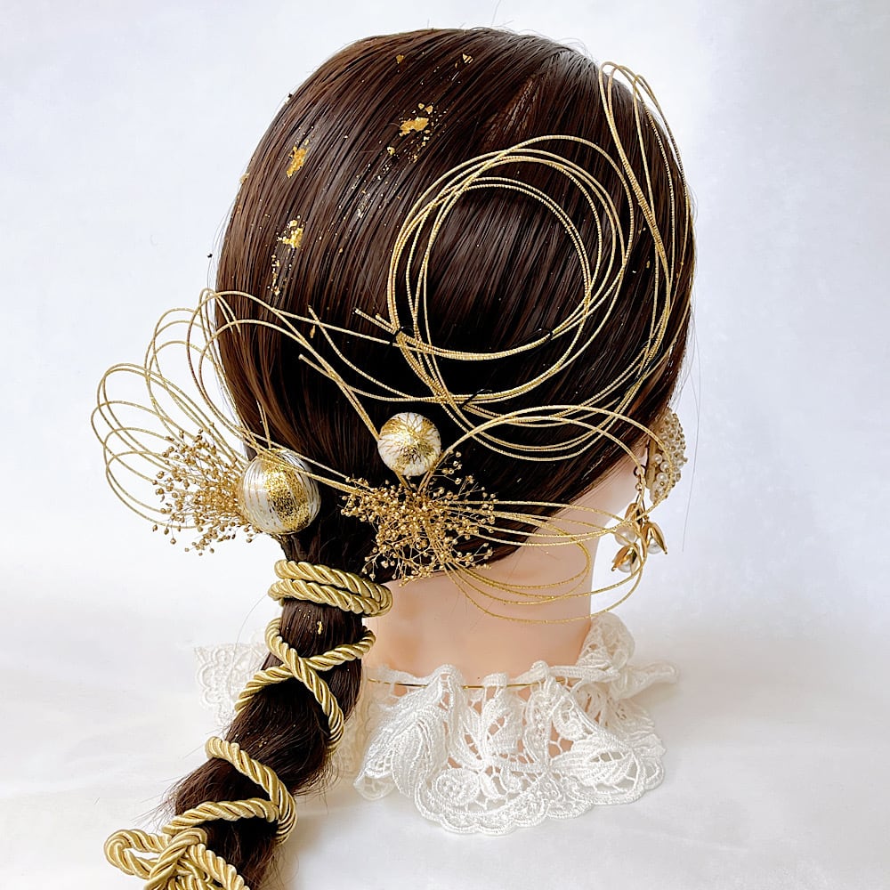 髪飾りアレンジ9点セット ホワイト×ゴールド 水引き 金箔シート 髪飾り 成人式 卒業式 七五三 結婚式 和玉 成人式髪飾り 卒業式髪飾り 紐アレンジ