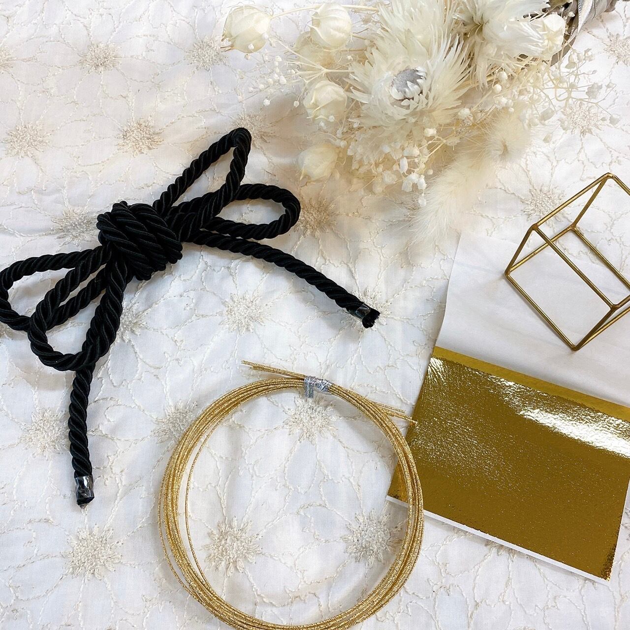 紐アレンジ 水引 金箔 3点セット ブラック&ゴールド 成人式髪飾り 結婚式髪飾り 卒業式髪飾り 七五三髪飾り