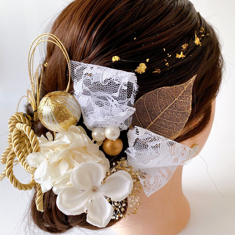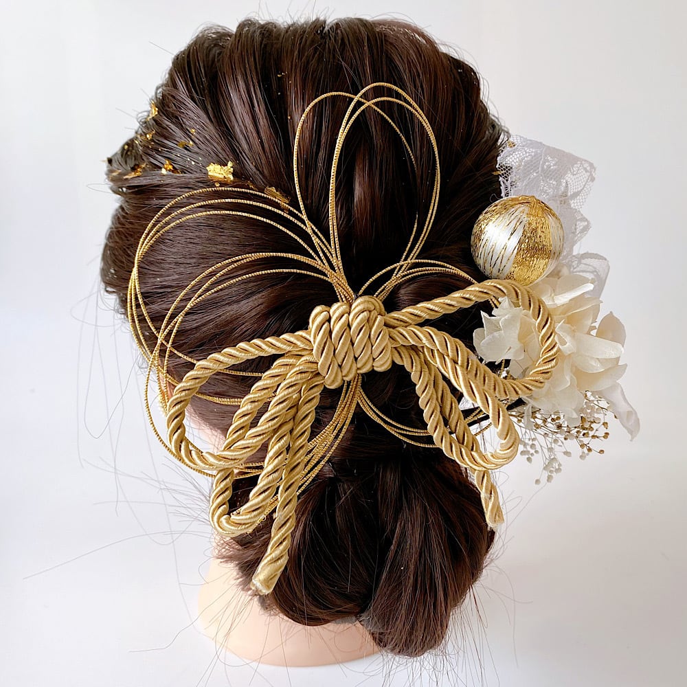 成人式髪飾り 髪飾り 水引き髪飾り 成人式 卒業式 和装 ホワイト×ゴールド 金箔 成人式髪飾り 卒業式髪飾り 結婚式髪飾り ウェディング 成人式紐アレンジ