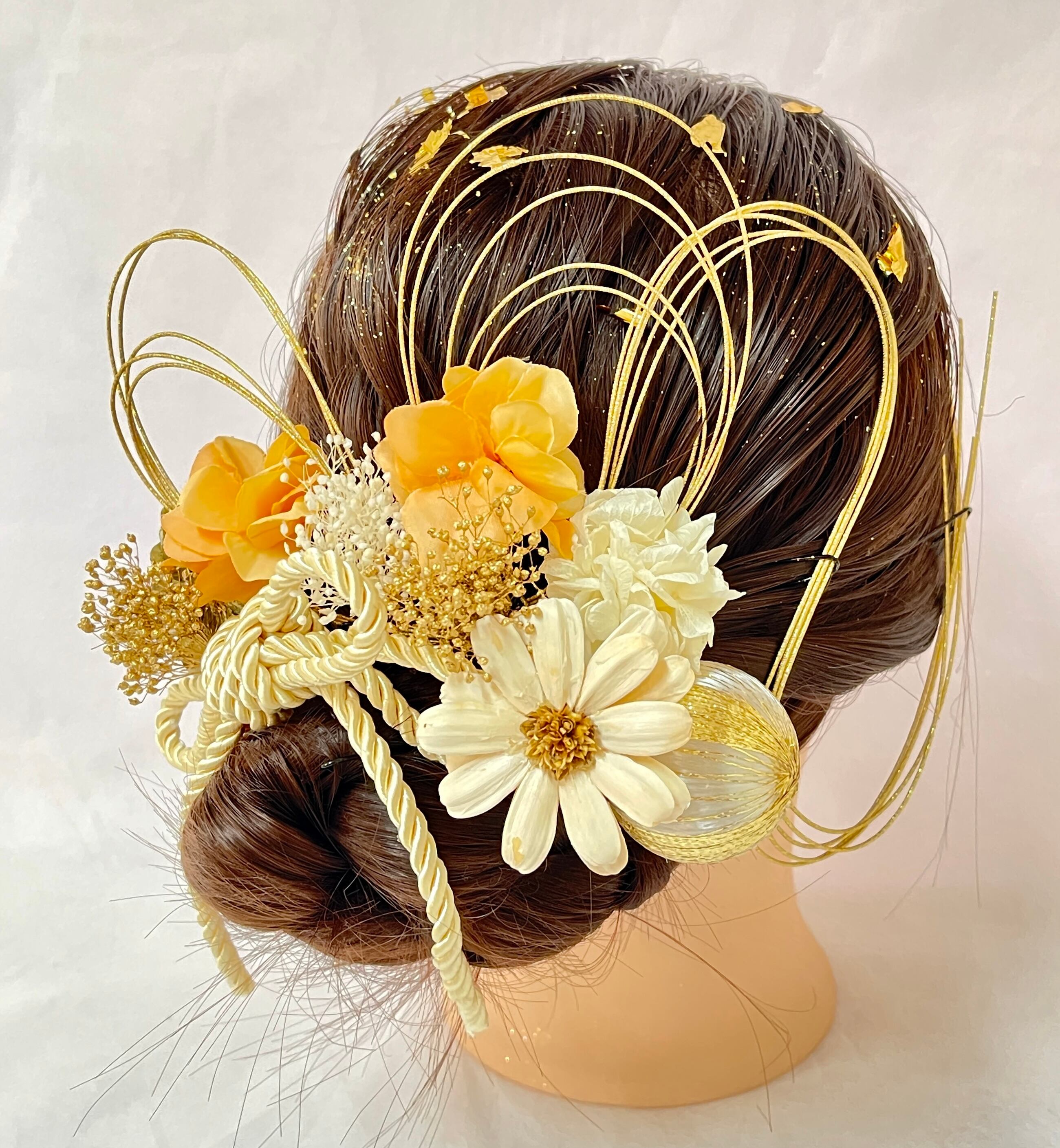 髪飾り オレンジ×ゴールド 成人式髪飾り 成人式 卒業式 卒業式髪飾り ウェディング 七五三 和装 はたちのつどいヘッドドレス ヘッドパーツ