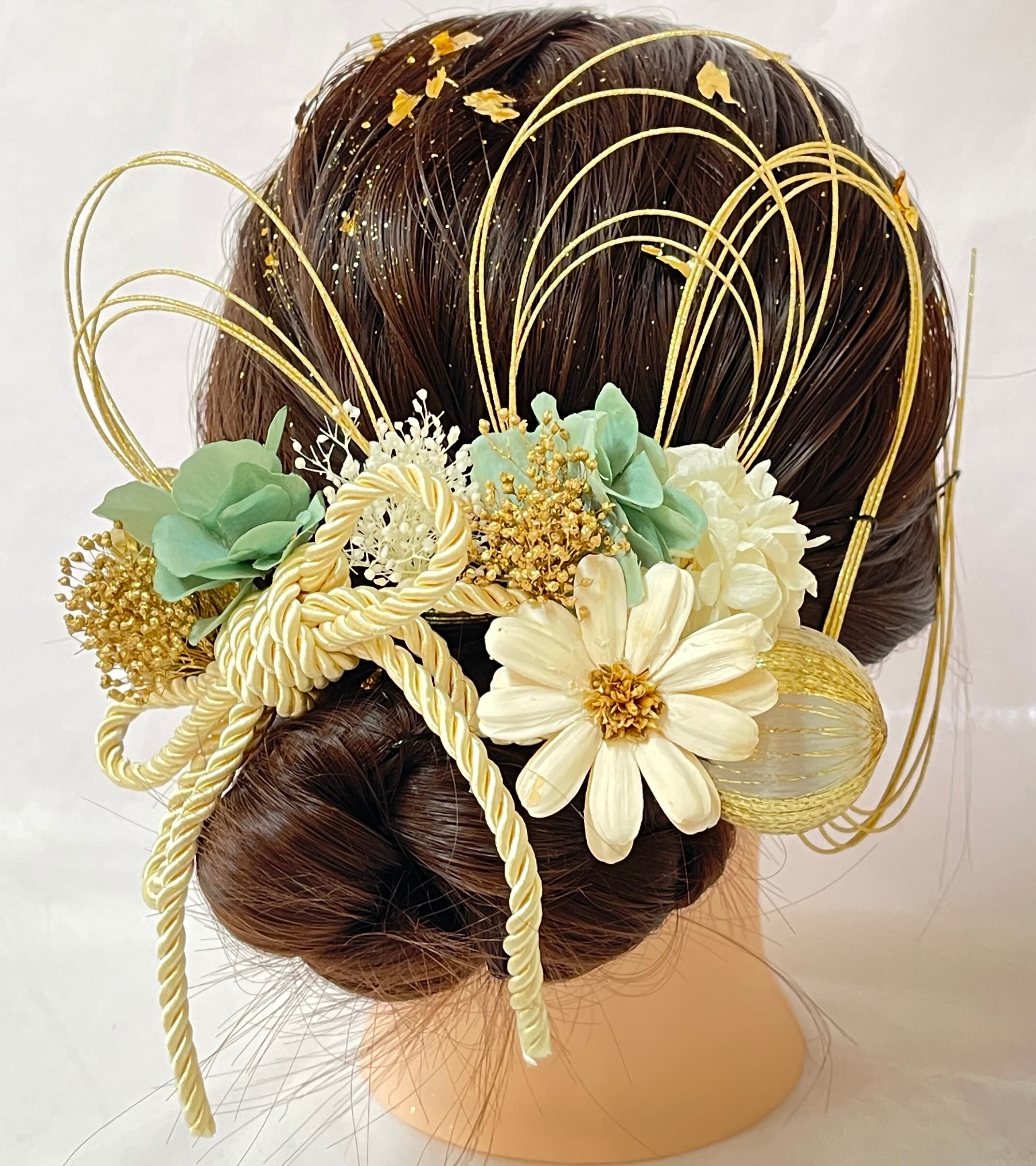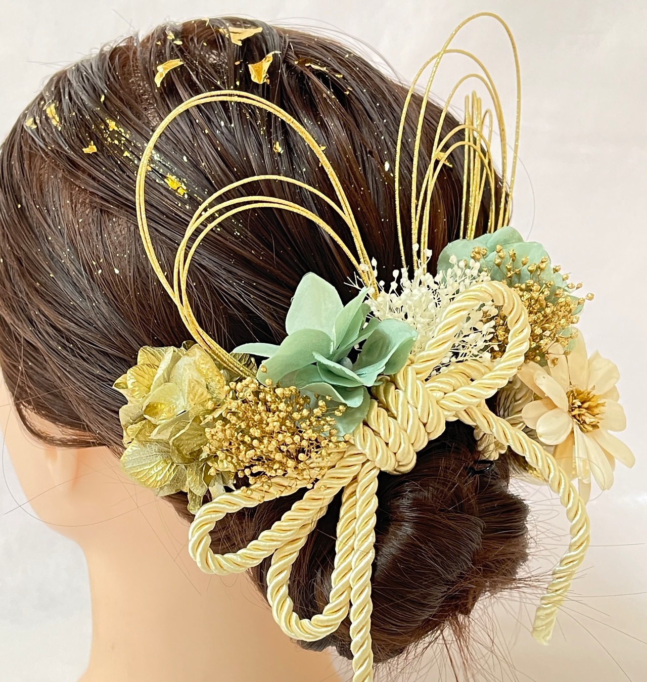 髪飾り グリーン×ゴールド 成人式髪飾り 成人式 卒業式 卒業式髪飾り ウェディング 七五三 和装 はたちのつどいヘッドドレス ヘッドパーツ