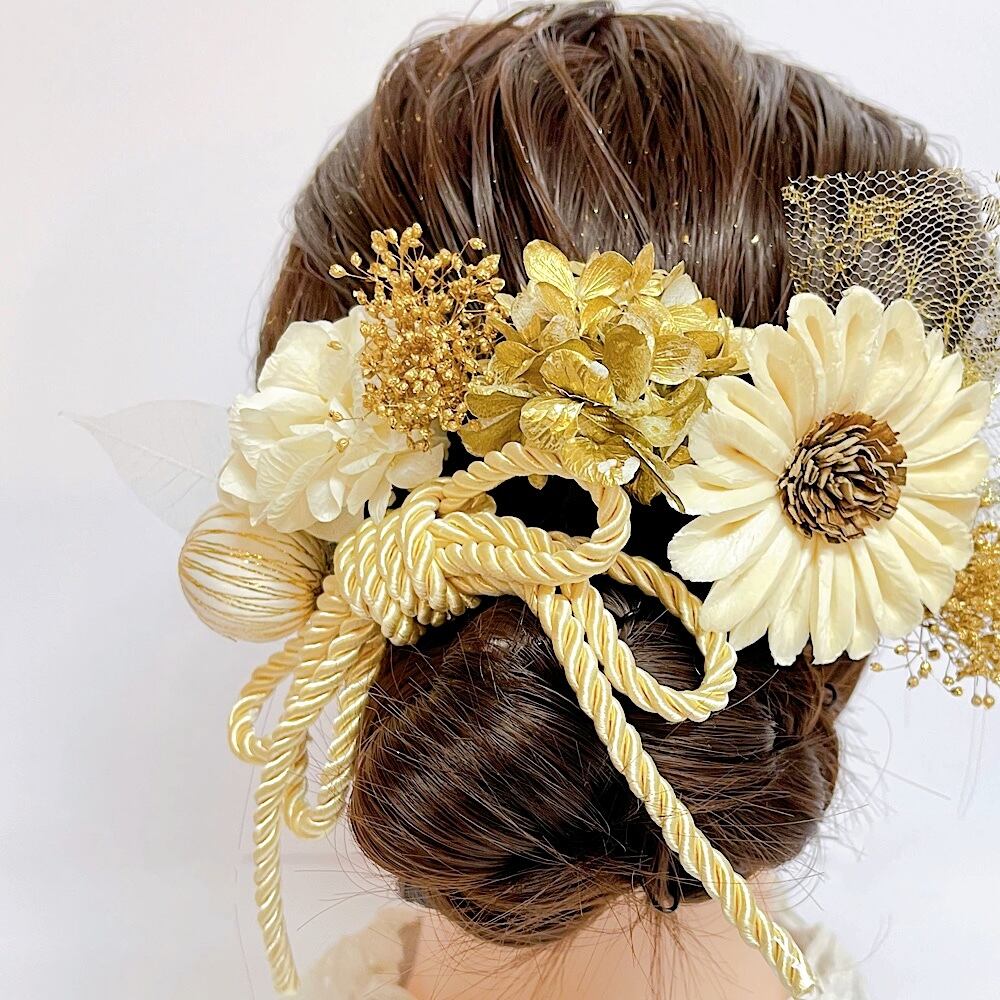 ヒマワリS ゴールドバージョン 成人式髪飾り 卒業式髪飾り 結婚式髪飾り ウェディング 成人式 卒業式 髪飾り 水引 和装