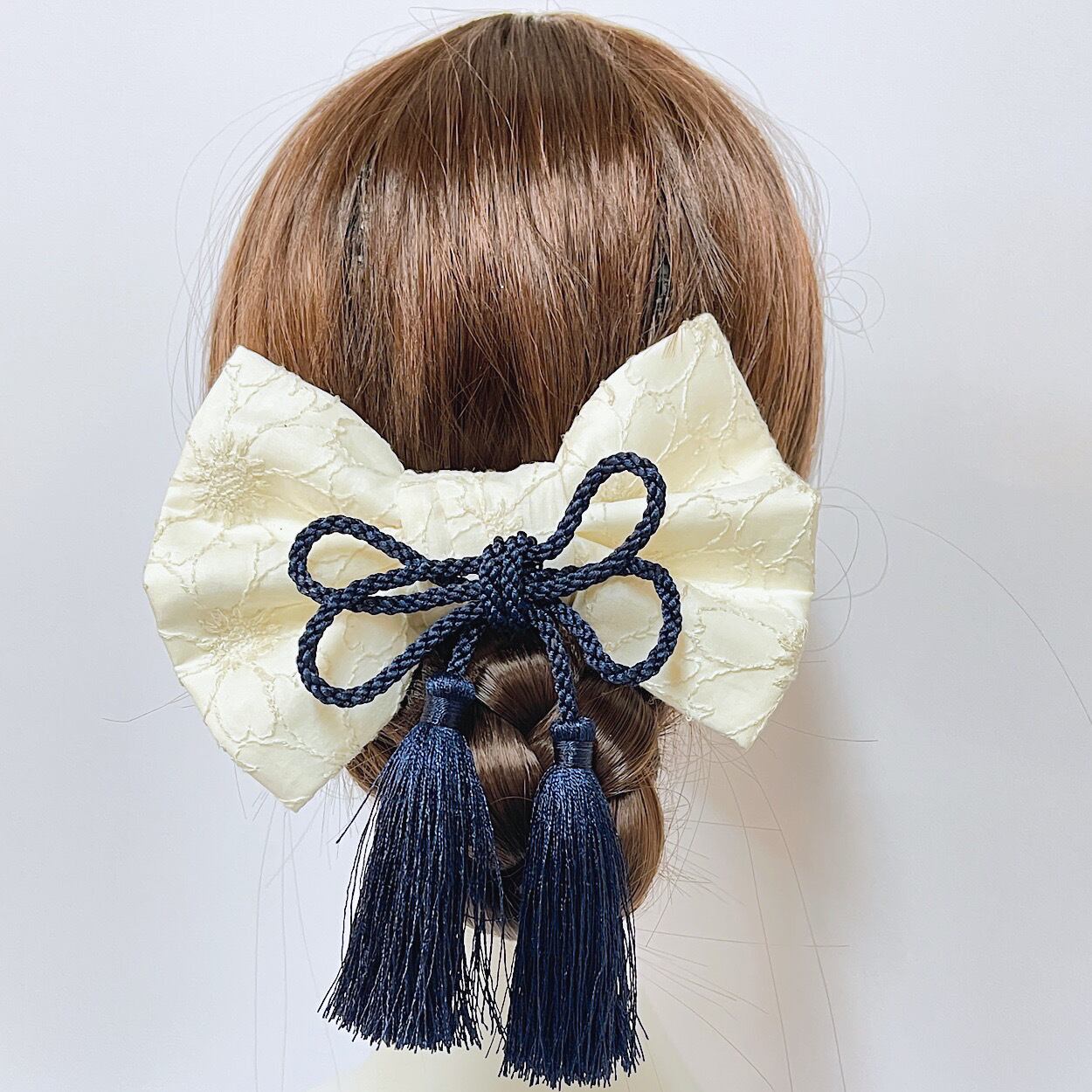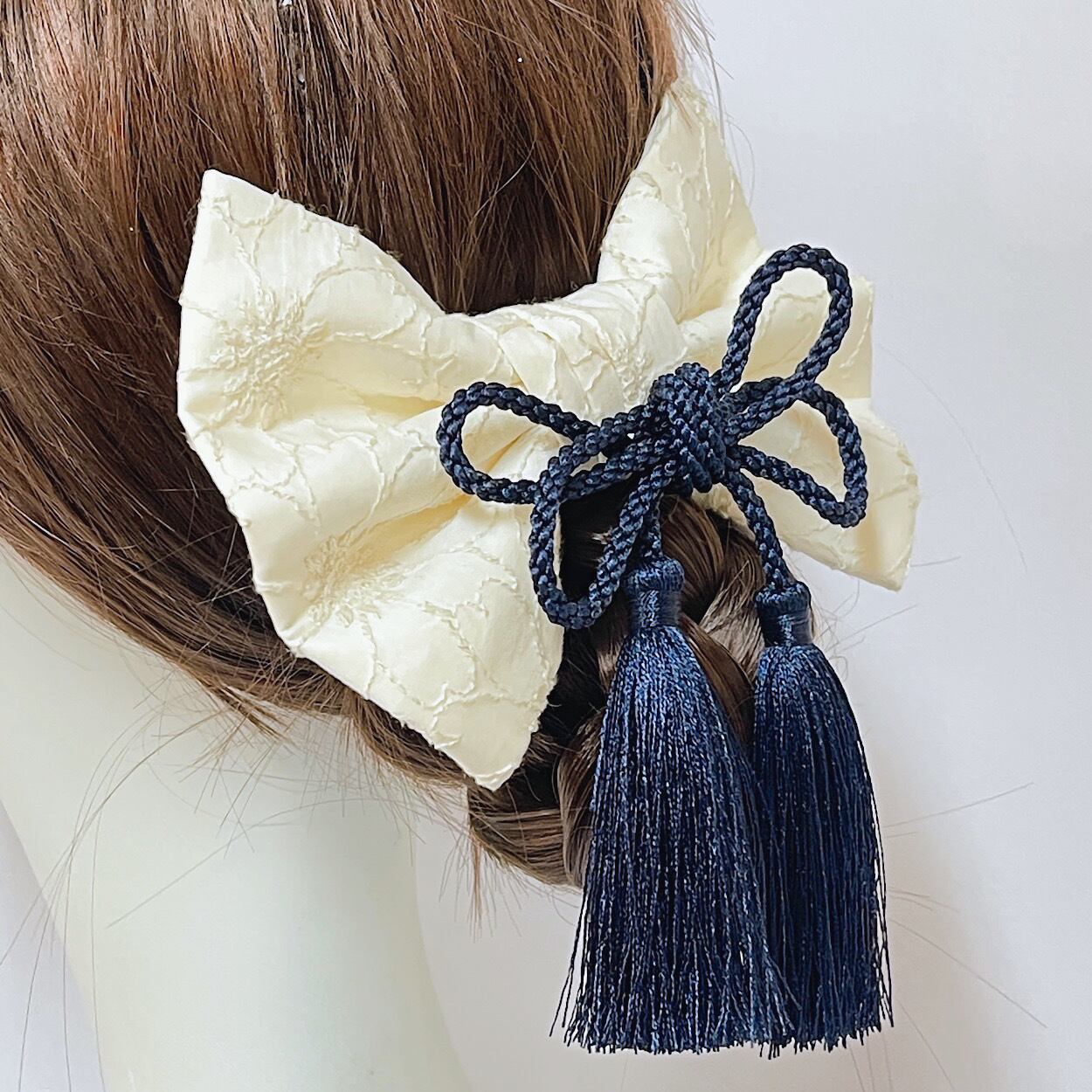 卒業式 リボン髪飾り 2way ブローチ ネイビーカラー 卒業式髪飾り 成人式 成人式髪飾り 結婚式 結婚式髪飾り 袴 ドレス ウェディング タッセル タッセルリボン