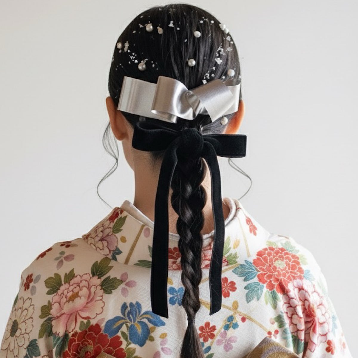卒業式 髪飾り ベロアリボン×シルバーリボンの髪飾り 成人式髪飾り 卒業式髪飾り 紐アレンジ 結婚式髪飾り ウェディング髪飾り 和装 袴 ヘッドドレス 前撮り 後撮り