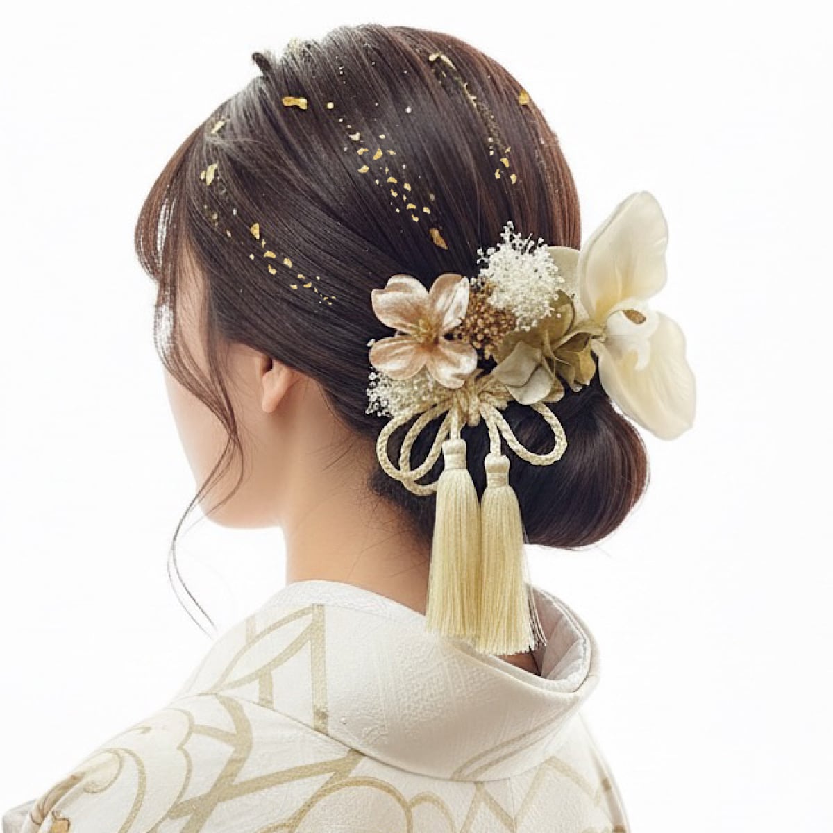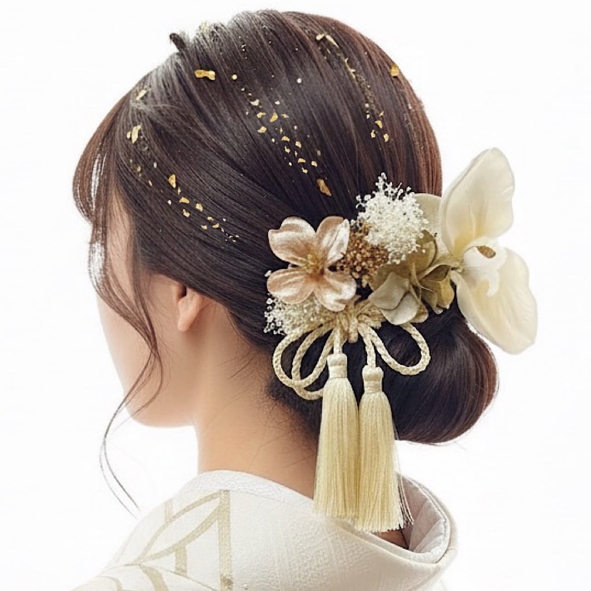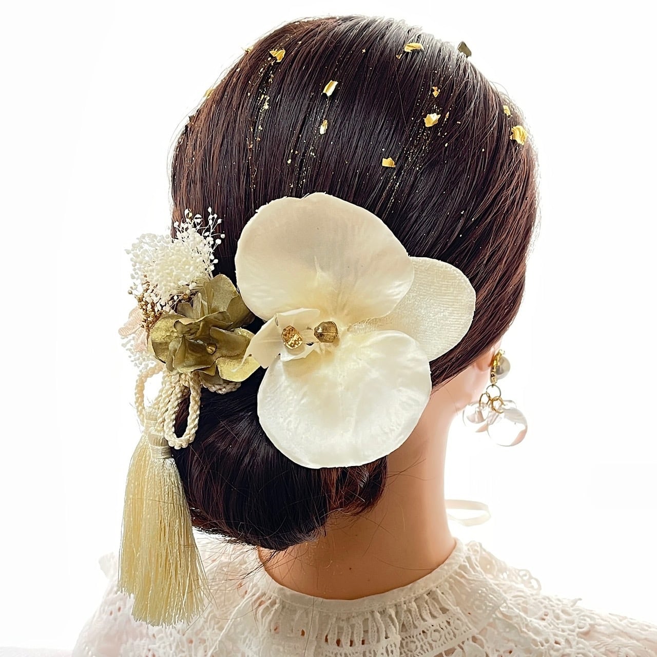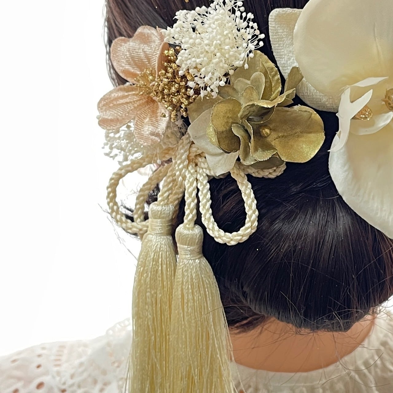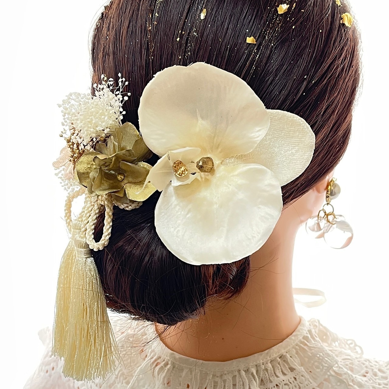 シルキーベージュ胡蝶蘭髪飾り 成人式 卒業式 結婚式 成人式髪飾り 卒業式髪飾り