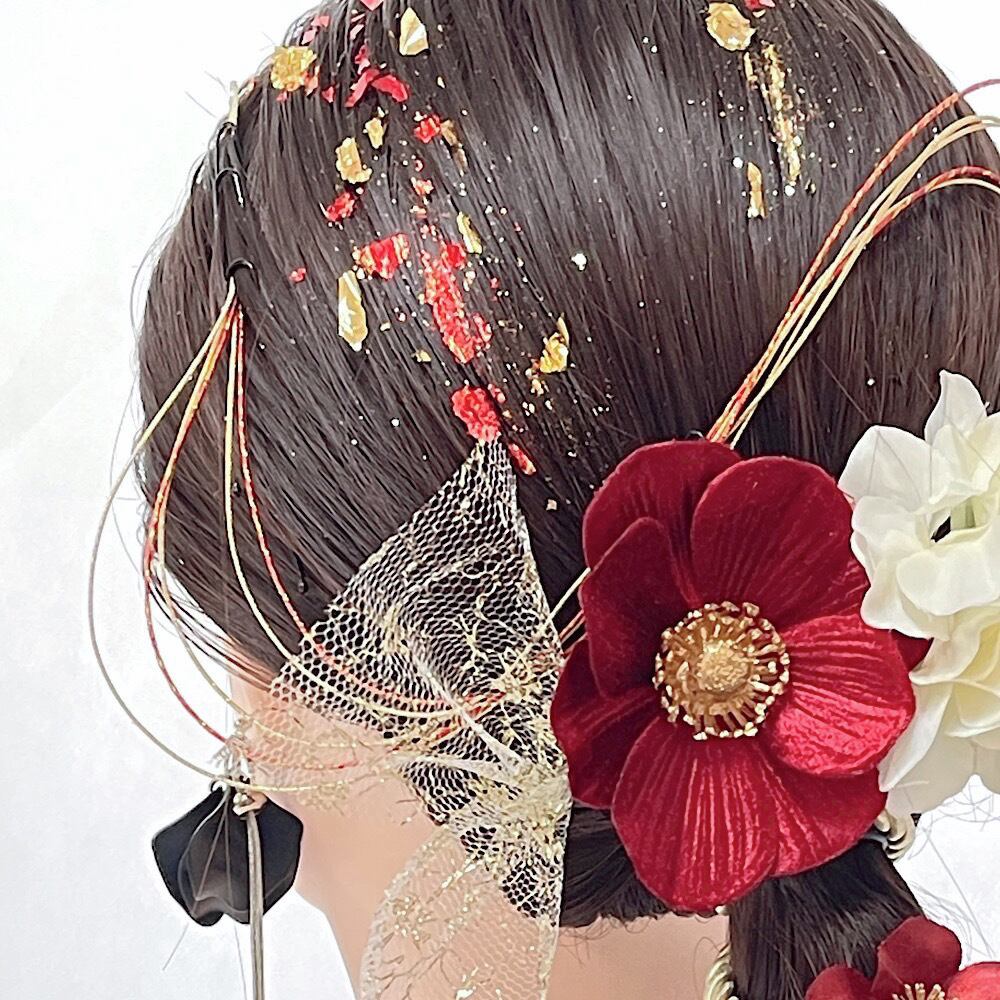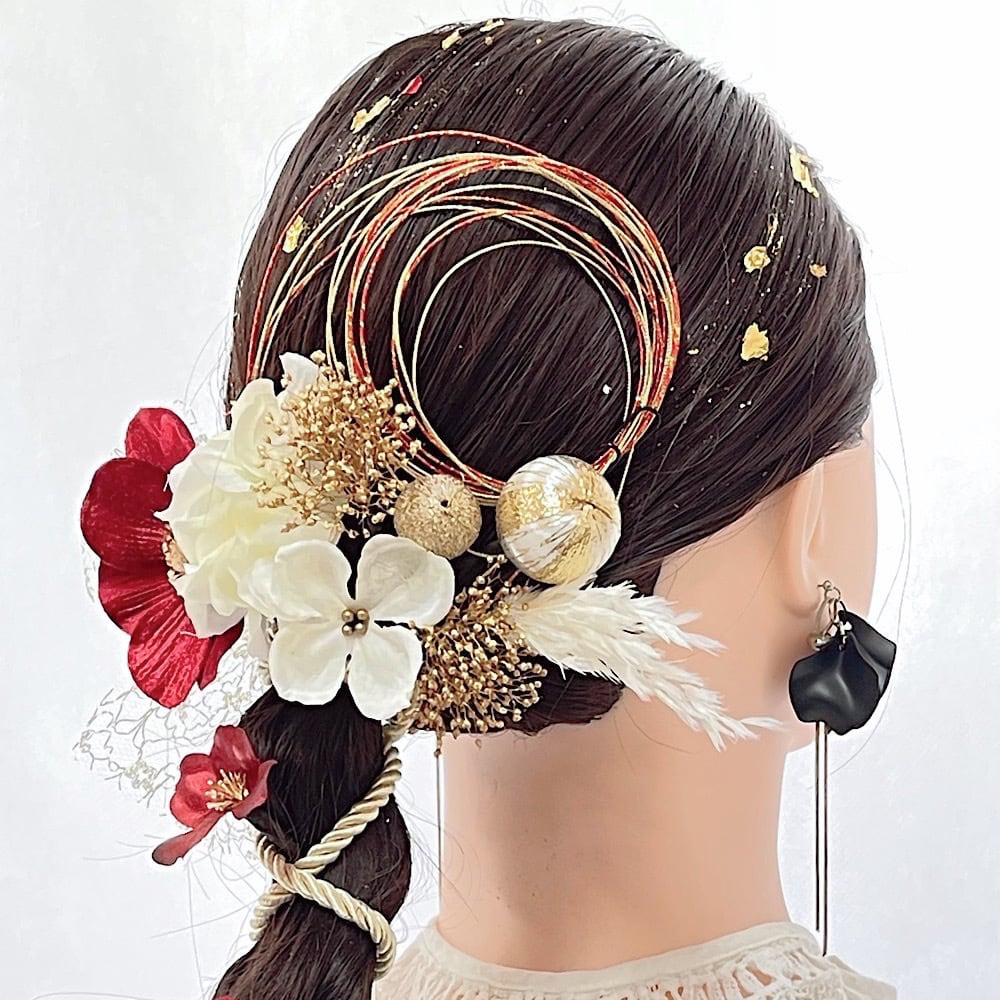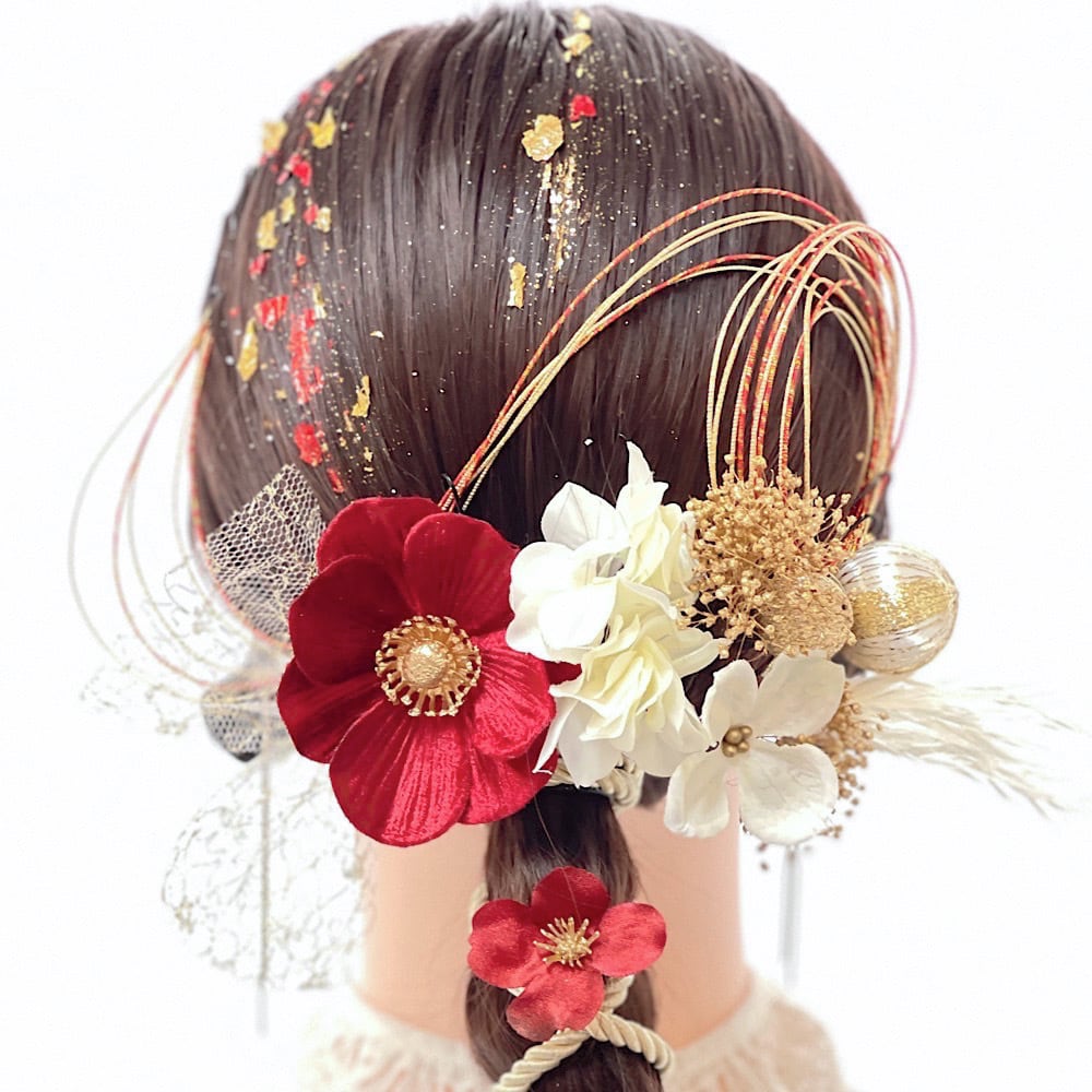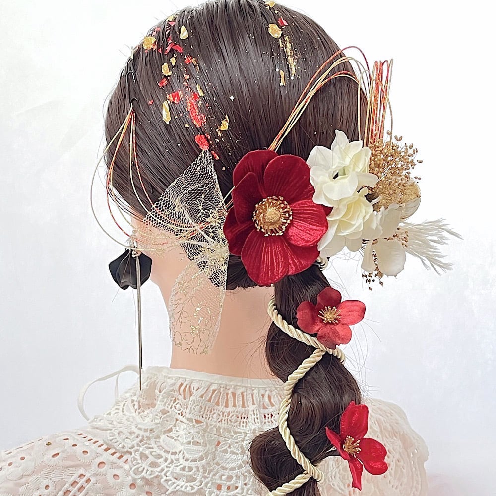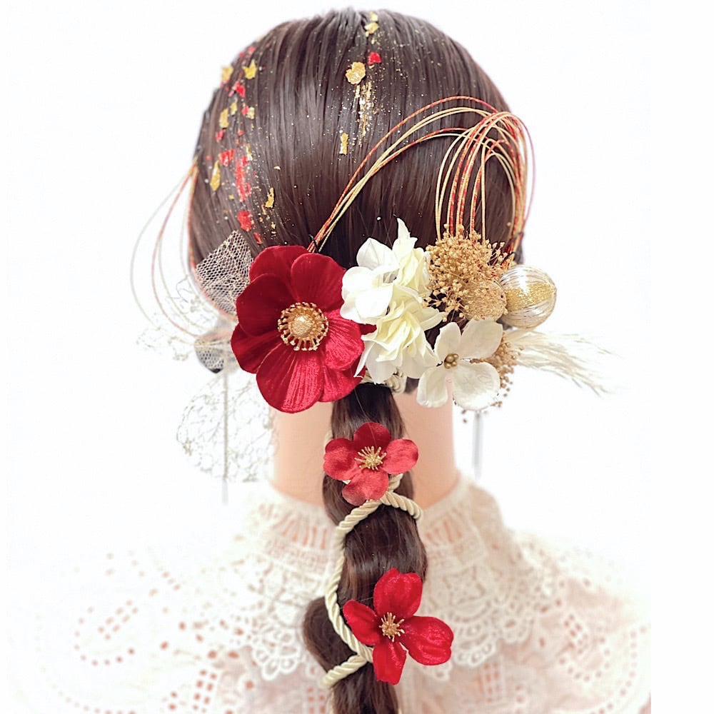 成人式 髪飾り 成人式髪飾り レッドホワイトゴールドミックス 卒業式 卒業式髪飾り ウェディング 七五三