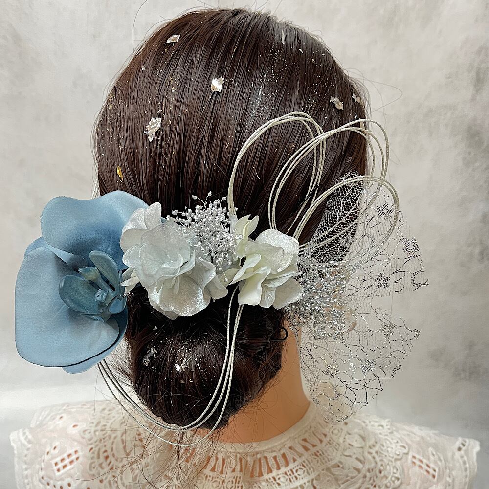 シルバー&グレー 胡蝶蘭 髪飾り 水引き シルバー髪飾り 成人式 成人式髪飾り 卒業式 卒業式髪飾り 結婚式 結婚式髪飾り