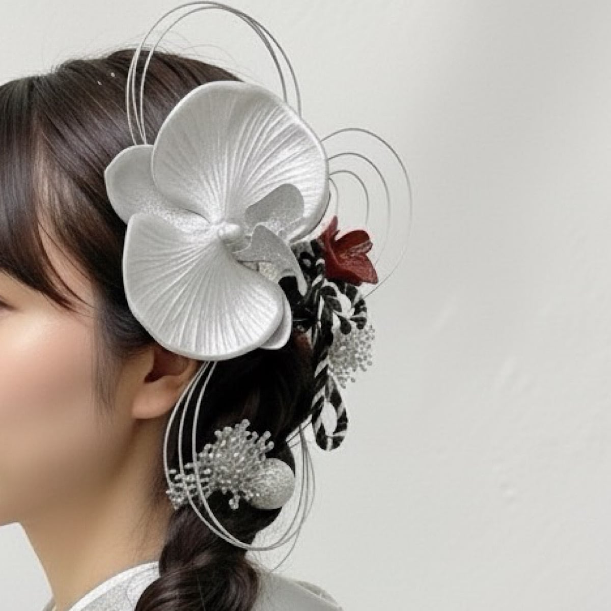 胡蝶蘭シルバーミックス髪飾り 成人式 卒業式 結婚式 成人式髪飾り 卒業式髪飾り 袴 白無垢 水引き 水引き髪飾り 七五三