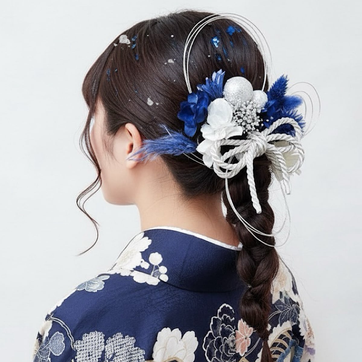 シャイニーシルバーブルーミックス髪飾り 成人式 結婚式 卒業式 七五三 髪飾り