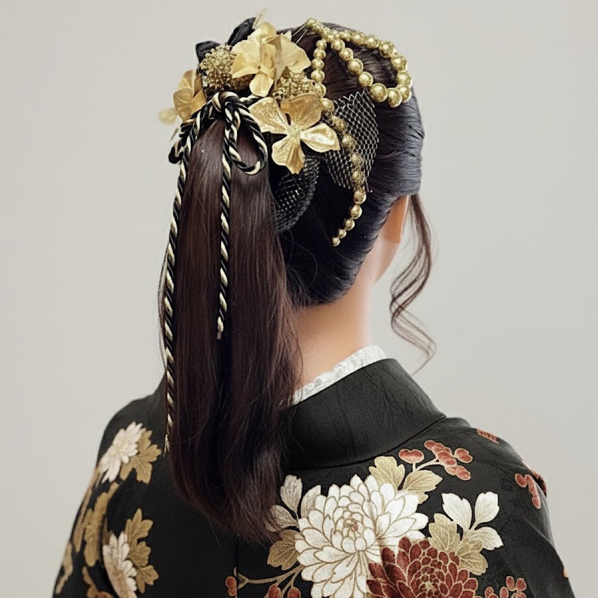 クールブラック 髪飾り ランダムボールチェーン ブラックゴールド 成人式 成人式髪飾り 卒業式 卒業式髪飾り 結婚式 結婚式髪飾り 七五三 七五三髪飾り 黒 金