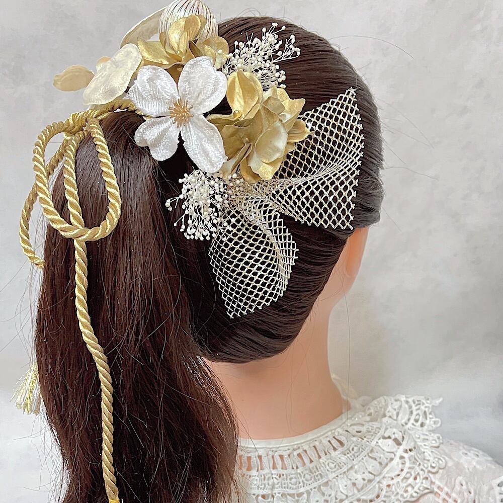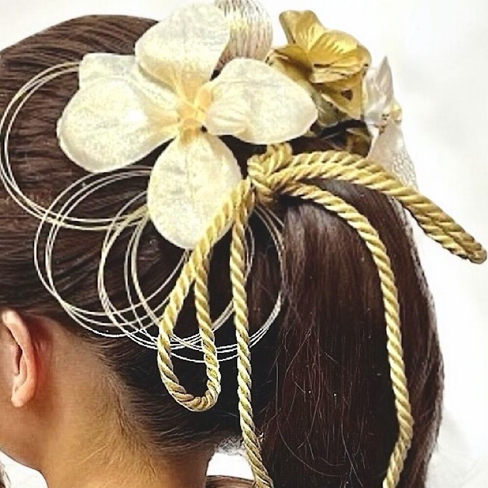オーロラゴールド髪飾り 成人式 髪飾り 卒業式 結婚式 成人式髪飾り 卒業式髪飾り 袴 水引き 水引き髪飾り ヘッドパーツ ヘッドドレス 前撮り 後撮り 金 白